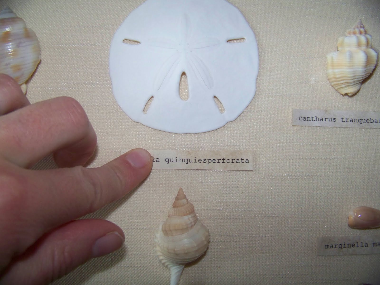 I wrapped it in a papertowel and pressed it with a heavy wood cutting board to make sure all the water was out and it was nice and flat, then cut names into little strips and adhered them under the shells.